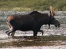 Лось (лат. Alces alces) — самый крупный зверь в Пермском крае. Длина тела до 2,9 м, высота в холке 2 м, масса 300—380 кг (отдельные особи — до 500—540 кг).[3]