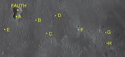 ![]() Снимок зонда Lunar Orbiter – IV. Крате Фаут вверху, сателлитный кратер Фаут А внизу. | |