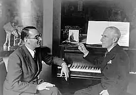 ![]() Жак Феврье (слева) и Морис Равель в Париже, 1937 год | |