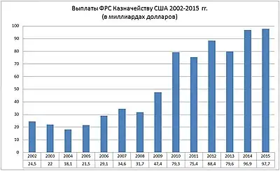 После выплаты зарплат управляющим и сотрудникам ФРС и фиксированных дивидендов по акциям ФРС перечисляет остаток прибыли на счета казначейства, которые поступают в доходную часть бюджета.