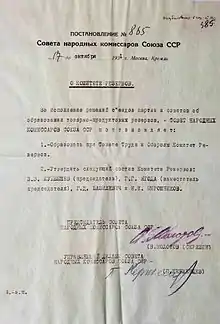 17 октября 1931 года постановлением Совнаркома СССР создан специализированный орган, объединивший в себе основные функции управления государственными резервами, — Комитет резервов при Совете труда и обороны (Комитет резервов)[2]. В ведение Комитета резервов были переданы все мобилизационные запасы, находившиеся в разных учреждениях и на предприятиях, а также мобилизационный и государственный хлебные фонды, ранее находившиеся под управлением Народного комиссариата по снабжению.
