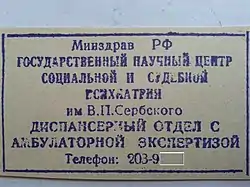 - Государственный научный центр социальной и судебной психиатрии им. В.П. Сербского. serbsky.ru. Дата обращения: 3 октября 2017.
