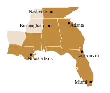 Резервный банк Атланты является штаб-квартирой Шестого округа Федеральной резервной системы, который включает в себя штаты Алабама, Флорида, Джорджия, восточные две трети Теннесси, южные части Луизианы и Миссисипи. У Банка есть отделения в Бирмингеме, Джэксонвилле, Майами, Нашвилле и Новом Орлеане.