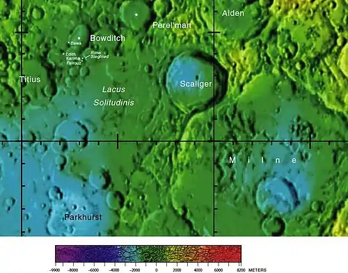 - Andersson, L.E., and E.A. Whitaker, NASA Catalogue of Lunar Nomenclature, NASA Reference Publication 1097, October 1982.
