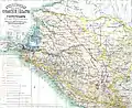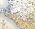 Военно-историческая карта Северо-западного Кавказа с обозначением укреплений местонахождения не существующих ныне крепостей, укреплений, постов и главнейших кордонных линий, устроенных русскими войсками с 1774 года до окончания Кавказской войны.
