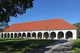 Пример крупномасштабной конюшни, относящейся к уникальному эстонскому ансамблю барокко. Представляет из себя длинное строение с 15 аркадами[11]. В 2012 году была начата её реставрация[14], а затем — реконструкция, которая была завершена в 2014 году[15]. В настоящее время здесь находится спортивный зал Вяэнаской начальной школы-детсада. Зал можно арендовать для проведения различных мероприятий: свадьбы, конференции, семинары[13].