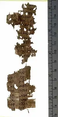 ![]() Оксиринхский папирус 2380, стихи Феогнида 254-278 | |