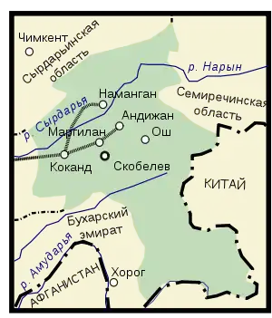 ![]() Карта Туркестанской АССР. Ферганская область выделена серо-голубым цветом. | |||||