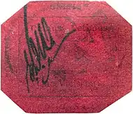 - В 1878 году (по некоторым источникам — в 1880-х годах) марка была продана Феррари ливерпульским торговцем марками Томасом Ридпатом (англ. Thomas Ridpath) за 150 фунтов стерлингов (по нынешней оценке, $750). С тех пор марка обрела известность, и цена на неё пошла резко вверх.