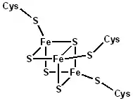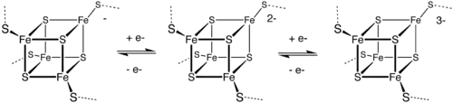 У низкопотенциальных ферредоксинов формальная степень окисления ионов железа может быть [2Fe3+, 2Fe2+] и [1Fe3+, 3Fe2+], а у высокопотенциальных — [3Fe3+, 1Fe2+] или [2Fe3+, 2Fe2+].