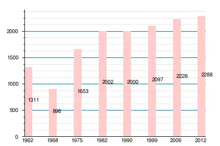 | 1962 | 1968 | 1975 | 1982 | 1990 | 1999 | 2004 | 2006 | 2009 | 2011 | 2012 |