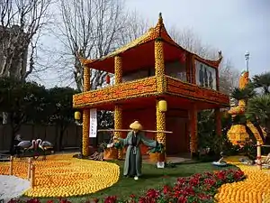 С 1936 года фестиваль проводится в ботаническом саду Ментона (фр. Les jardins Biovès)[4]. Здесь создаются разнообразные скульптуры и конструкции из цитрусовых, как правило, в рамках определённой темы. Так, в 2001 году темой фестиваля были сказки Перро, в 2009 — музыка, в 2012 — регионы Франции, в 2015 — Китай, в 2016 — итальянское кино, в 2017 — Бродвей[5], в 2020 - праздники мира. В создании скульптур ежегодно участвуют около 240 000 человек, при этом используется около 145 тонн цитрусовых[6]. Интересно, что местные лимоны в празднике почти не задействованы: они считаются деликатесом и используются исключительно в гастрономических целях. Цитрусовые для фестиваля завозятся в Ментон из Испании[7].
