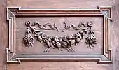 Его происхождение, вероятно, связано с изображением на камне гирлянд из живых цветов и т. д., которые были подвешены над дверным проемом в ближайшие дни или подвешены вокруг алтаря.