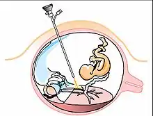 Процедура представляет собой периодическое удаление околоплодных вод. Она основывается на допущении, что острое многоводие может вызвать преждевременные роды, повреждение тканей или антенатальную гибель плода. Однако, на ранних сроках сама процедура связана с риском прерывания беременности. Не существует четких критериев, когда и сколько околоплодной жидкости следует удалить, потому что система её выработки очень динамична. Выживаемость по крайней мере одного плода составляет 66 %, причём риск ДЦП у выжившего будет около 15 %, а средний срок родов составит 29 недель гестации.