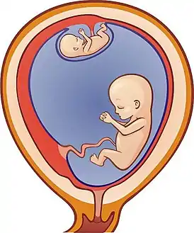 Благодаря общей единой плаценте кровотоки плодов могут соединяться. Несмотря на тот факт, что каждый использует свою часть плаценты, в ней могут образовываться соединительные сосуды (анастомозы), кровь по которым способна перетекать от одного плода к другому, вызывая диспропорцию в её объёмах. В зависимости от направления тока крови, один из плодов становится «донором», второй — «реципиентом».