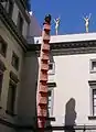 «Телевизионный обелиск» Вольфа Фостеля — первого европейца, создавшего концепцию окружающей среды и устраивавшего первые на нашем континенте «хэппенинги». Это монолит из 14 телевизоров, завершенный женской головой