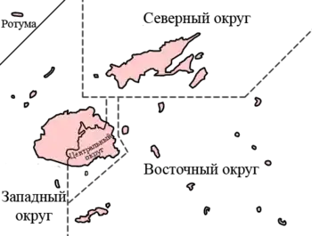 В административном отношении Республика Фиджи разделена на округа. Всего в стране насчитывается четыре округа и одна зависимая территория: