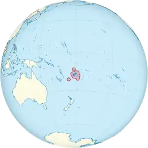 Меланезийское государство Фиджи представляет собой скопление вулканических и коралловых островов, расположенных в юго-западной части Тихого океана. Столица страны, город Сува, расположена примерно в 1770 км к северу от Новой Зеландии и примерно в 4450 км к юго-западу от американского штата Гавайи[6]. Ближайшие архипелаги — острова Футуна (Хорн), принадлежащие французской территории Уоллис и Футуна и расположенные к северо-востоку от островов Фиджи, острова Тонга, лежащие к востоку и принадлежащие одноимённому государству, а также Новые Гебриды, расположенные к западу и принадлежащие Вануату.