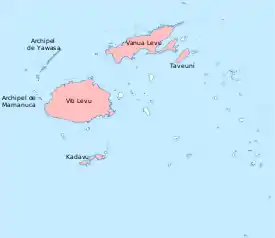 Фиджийская попугайная амадина обитает на островах Фиджи: Кандаву, Вити-Леву, Вануа-Леву и Тавеуни. Она населяет на этих островах луга, плантации риса, сады, поляны и границы низменных дождевых лесов, а также горные леса. Она отсутствует в туманных лесах на высоте более 1 100 м над уровнем моря.