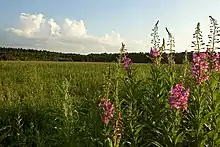 Болота более всего распространены в Московской области на территории Верхне-Волжской низменности и в Мещере — в Шатурском и Луховицком (на востоке) районах[92]. Для флоры региона характерны также суходольные, низинные и пойменные луга[94]. Естественных пойменных лугов почти не осталось. Количество аборигенных видов растений в Подмосковье сокращается, но всё шире распространяются представители иной флоры (к примеру, клён американский); на больших территориях расселились и виды, пришедшие из культуры — борщевик Сосновского, водосбор обыкновенный, недотрога железистая, золотарник гигантский и др.[95] Некоторые виды растений занесены в Красную книгу России (водяной орех, венерин башмачок и др.)[97].