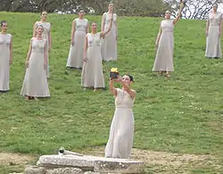 При этом следует отметить, что впервые церемония состоялась перед Олимпиадой 1936 года в Берлине, после чего последовала первая эстафета олимпийского огня, идея которой принадлежит немцу Карлу Диму[13], восходящая к греческому ритуалу лампадодромии).