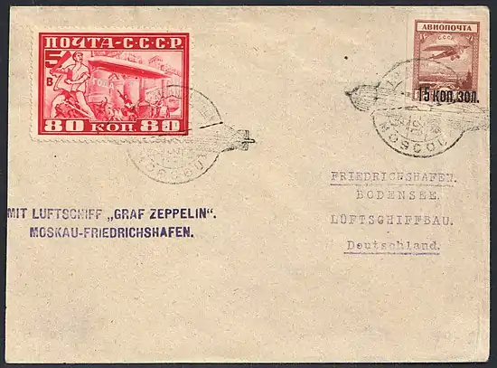 Среди самых однозначных примеров известных или популярных филателистических конвертов — конверты цеппелинной (или дирижабельной) почты. Это конверты, которые были перевезены на борту дирижаблей в 1930-х годах и имеют оттиски специальных штемпелей и другие специальные пометки[≡].