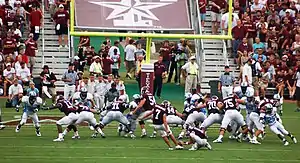 Бывает, что защита не только блокирует удар, а ещё и возвращает мяч в тачдаун. Были случаи, такие как Kick Six[1][2][3], что команда выигрывала матч заблокировав удар и вернув его в тачдаун.