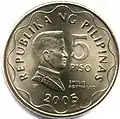 5 песо | 27,0 | 1,87 | 7,7 | латунь | гладкий | 1995—2017 |