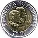 10 сентимо | 17,0 | 1,67 | 2,5 | рубчатый | 1995—1999 2001 2002 2004—2017 | |