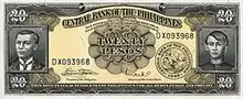 [[Файл:|162px]] | 20 песо | чёрный жёлтый оранжевый |