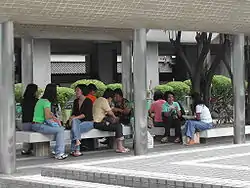 Популярным местом досуга филиппинцев, особенно в выходные дни, является трёхэтажный торговый центр на цокольном уровне офисного небоскрёба World-Wide House, расположенного в Центральном районе. Здесь многими небольшими магазинами, киосками и открытыми лотками управляют филиппинцы, которые оказывают землякам различные услуги (денежные переводы, телефонная и интернет связь) и продают филиппинские товары — продукты питания, напитки, журналы, музыку и фильмы.