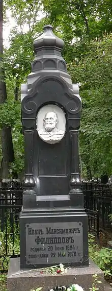 Умер Иван Филиппов весной 1878 года. Похоронен на Ваганьковском кладбище (21 уч.)[3].