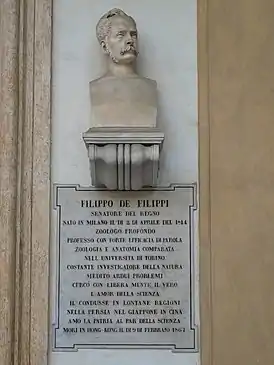 ![]() Бюст Филиппо де Филиппи в университете Турина | |