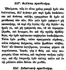 - Фотий, «Библиотека» Cod. 35. Филипп из Сиде. Христианская история.