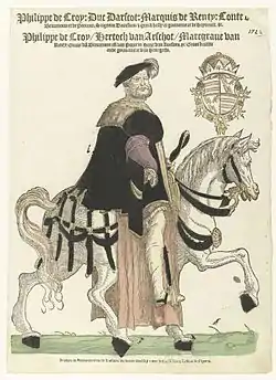 В 1533 уступил императору Карлу V герцогства Сору, на которое претендовал герцог Урбинский, и Арчи, а также баронию Рокка-Гульельма. Взамен император, грамотой, данной в Генуе перед пасхой, возвел Ранти в ранг маркизата, а Арсхот в ранг герцогства, и дал Филиппу право именоваться своим кузеном.