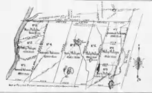 - French’s Gazetteer of the State of New York (1860): «The Philipses Patent… divided among the remaining three [children] Philip… Susannah married to Beverly Robinson, and Mary married to Col. Roger Morris. On the 7th of Feb 1754, the patent was divided into 9 lots: 3, each 4 mi. square, bordering upon the Hudson and denominated ‘water lots;’ 3, each 4 mi. wide by 12 long, extending N. and S. across the patent, and denominated ‘long lots;’ 3, each 4 mi. square, upon the E. border denominated ‘back lots.’ Philip, Susannah and Mary Philipse each owned one of each kind of lots.»