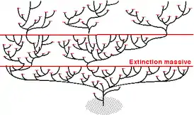 Филогенез рассматривает эволюцию в качестве процесса, в котором генетическая линия — организмы от предка к потомкам — разветвляется во времени, и её отдельные ветви могут приобретать те или иные изменения или исчезать в результате вымирания.