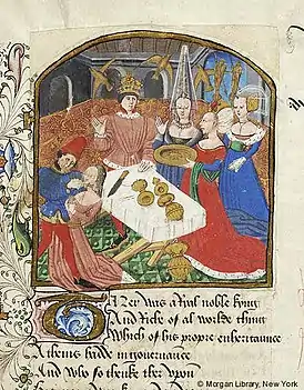 ![]() Терей отрезает язык Филомеле. Англия, миниатюра ок. 1470 года | |