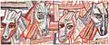 …Я встретил одного художника и спросил, пойдёт ли он на войну? Он ответил: «Я тоже веду войну, только не за пространство, а за время. Я сижу в окопе и отымаю у прошлого клочок времени. Мой долг одинаково тяжёл, что и у войск за пространство». Он всегда писал людей с одним глазом. Я смотрел в его вишнёвые глаза и бледные скулы. Ка шёл рядом. Лился дождь. Художник писал пир трупов, пир мести... Мертвецы величаво и важно ели овощи, озаренные подобным лучу месяца бешенством скорби[10].