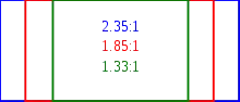 Широкоформа́тное кино́ — разновидность кинематографических систем, в основе которых лежит использование киноплёнки с шириной, превосходящей стандартную 35-мм[8] (чаще от 50 до 70 мм[9]). Широкоформатные киносистемы отличаются большой площадью кадра, не требующего сильного увеличения и позволяющего получать высококачественное изображение на больших экранах[10]. Широкие форматы разрабатывались, как замена дорогостоящему панорамному кинематографу, и при сопоставимой площади кадра дают цельное изображение без стыков. Наибольшее распространение получили широкоформатные системы, использующие для изготовления фильмокопий киноплёнку шириной 70-мм с кадром, занимающим в высоту пять перфораций и широкоэкранным[11] соотношением сторон 2,2:1 (формат «5/70»). Современный вид широкоформатного кинематографа регламентируется стандартом ISO 2467:2004[12] в соответствии с рекомендациями и нормативами SMPTE. В настоящее время в широкоформатном кино для съёмки используется киноплёнка шириной 65-мм и сферическая (аксиально-симметричная) оптика, а для печати фильмокопий — киноплёнка шириной 70-мм[13].