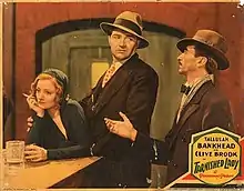 Лобби-карта фильма «Опороченная» (1931). (Слева направо: Таллула Бэнкхед, Эдвард Гарган и Осгуд Перкинс)