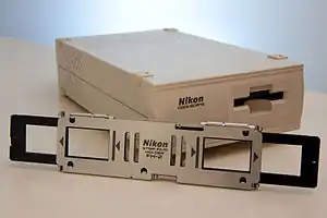 Фи́льм-ска́нер — устройство, преобразующее изображение с фотографического негатива или диапозитива (слайда) в цифровой файл. От обычного планшетного сканера отличается более высоким физическим разрешением, приведённым к эмульсионному слою фотоплёнки, поскольку сканирование происходит с очень малой площади малоформатного (реже — среднеформатного[1]) негатива. Ранние модели таких сканеров обладали типовым разрешением 2700 точек на дюйм. В дальнейшем показатели улучшались и в настоящий момент этот параметр составляет 4000 dpi[2]. Иногда фильм-сканерами называют сканеры киноплёнки, но это неверно, поскольку последние предназначены для оцифровки движущегося изображения и обладают гораздо более высоким быстродействием.