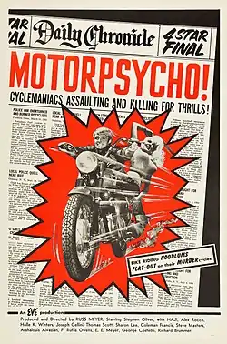 В начале 1960-х годов популярность эксплуатационных лент[K 11] набирает стремительную популярность. В 1961 году выходит фильм «Повреждённые товары», повествующий о девушке, чей парень, погрязший в распутстве, заражается венерическими заболеваниями, которые приводят носителя к физическому уродству[86]. Одновременно выходили фильм с сексуальным контентом, изображением наготы. Большой популярностью тогда стали пользоваться артисты-стиптизёры, такие как Бетти Пейдж, стали набирать популярность порноэротические фильмы, хотя первые из них появлялись ещё в 1930-е годы[87]. В конце 1950-х годов, когда старые грайндхаусы демонстрировали в основном «взрослый» контент, некоторые режиссёры предприняли попытку создания эротических кинолент с углублённым сюжетом. Наиболее известен в этом отношении Расс Мейер, выпустивший свой первый успешный эротический комикс «Аморальный мистер Тис» в 1959 году. Через пять лет Мейер выпустил фильм «Лорна», совмещающий в себе элементы эротики, насилия и драматического повествования[88]. Фильм «Мочи, мочи их, киска!» вышел в 1965 году, бюджет фильма составлял около 45 000 долларов. Наполненный двусмысленными намёками, но без эротических сцен, фильм стал одним из самых известных и успешных сексплуатационных фильмов в США. Студия AIP выпустила ряд других кинолент для подростков с похожей темой — «Пляжные игры» (1965), «Как справиться с диким бикини» (1965), где роли главных героев исполняли Аннетт Фуничелло и Фрэнки Авалон[89]. Фильм «Трип» 1967 года выпуска режиссёра Роджера Кормана и сценариста-ветерана студий AIP/Corman Джека Николсона заигрывал с темой наготы, хотя никогда не показывал обнажённые части тела[90].