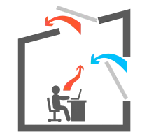 Инфильтрация (синяя стрелка) и эксфильтрация (красные стрелки) воздуха