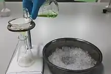 - фильтрование — гидромеханический процесс разделения механических смесей (дисперсных систем, например, суспензий и аэрозолей) при помощи пористых перегородок, пропускающих дисперсионную среду и задерживающих дисперсную фазу (твёрдые частицы)[7]; приборы и аппараты для фильтрования называют фильтрами.
