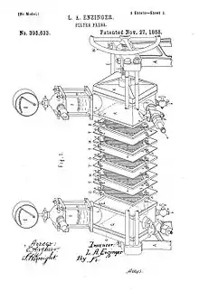 С 1888 года (официальная дата изобретения фильтр-пресса — 27 ноября) в мире было зарегистрировано более 400 патентов на фильтр-прессы и элементы их конструкции. Основная масса изобретений касается устройства пакета фильтровальных элементов — рам и плит.