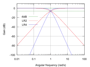Необходимость в четном количестве фильтров вызвана тем, что фильтры Баттерворта имеют подавление −3 дБ на частоте раздела. В результате сложения сигналов высокочастотного и низкочастотного сигналов, полученных после фильтров Баттерворта, на частоте раздела происходит усиление сигнала на 3 дБ. При последовательном использовании двух фильтров Баттерворта, сигналы получают подавление на −6dB, в результате чего сумма низкочастотного и высокочастотного сигнала имеет усиление 0 дБ по всему спектру частот.