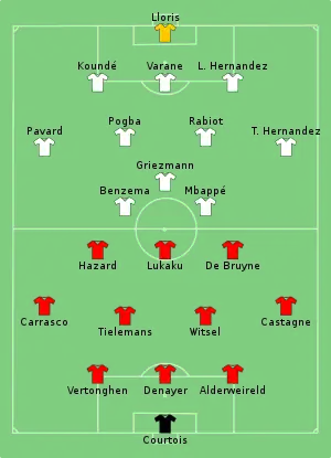 - Tactical Line-ups – Semi-finals – Belgium v France (англ.). UEFA.com. Union of European Football Associations (7 October 2021).