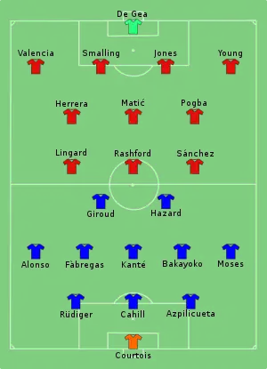 Команды ранее дважды встречались в финалах Кубка Англии: в 1994 году победу со счётом 4:0 одержал «Манчестер Юнайтед», а в 2007 году «Челси» выиграл в дополнительное время со счётом 1:0 (на тот момент главным тренером «Челси» был Жозе Моуринью, главный тренер «Манчестер Юнайтед» в финале 2018 года).
