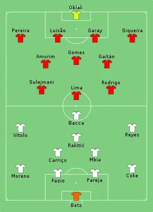 По причине дисквалификации «Бенфике» в финале не смогли помочь Лазар Маркович, Энцо Перес и Эдуардо Сальвио. «Севилья» была вынуждена обойтись без травмированных Себастьяна Кристофоро и Дениса Черышева, а также дисквалифицированного Хайро Самперио.